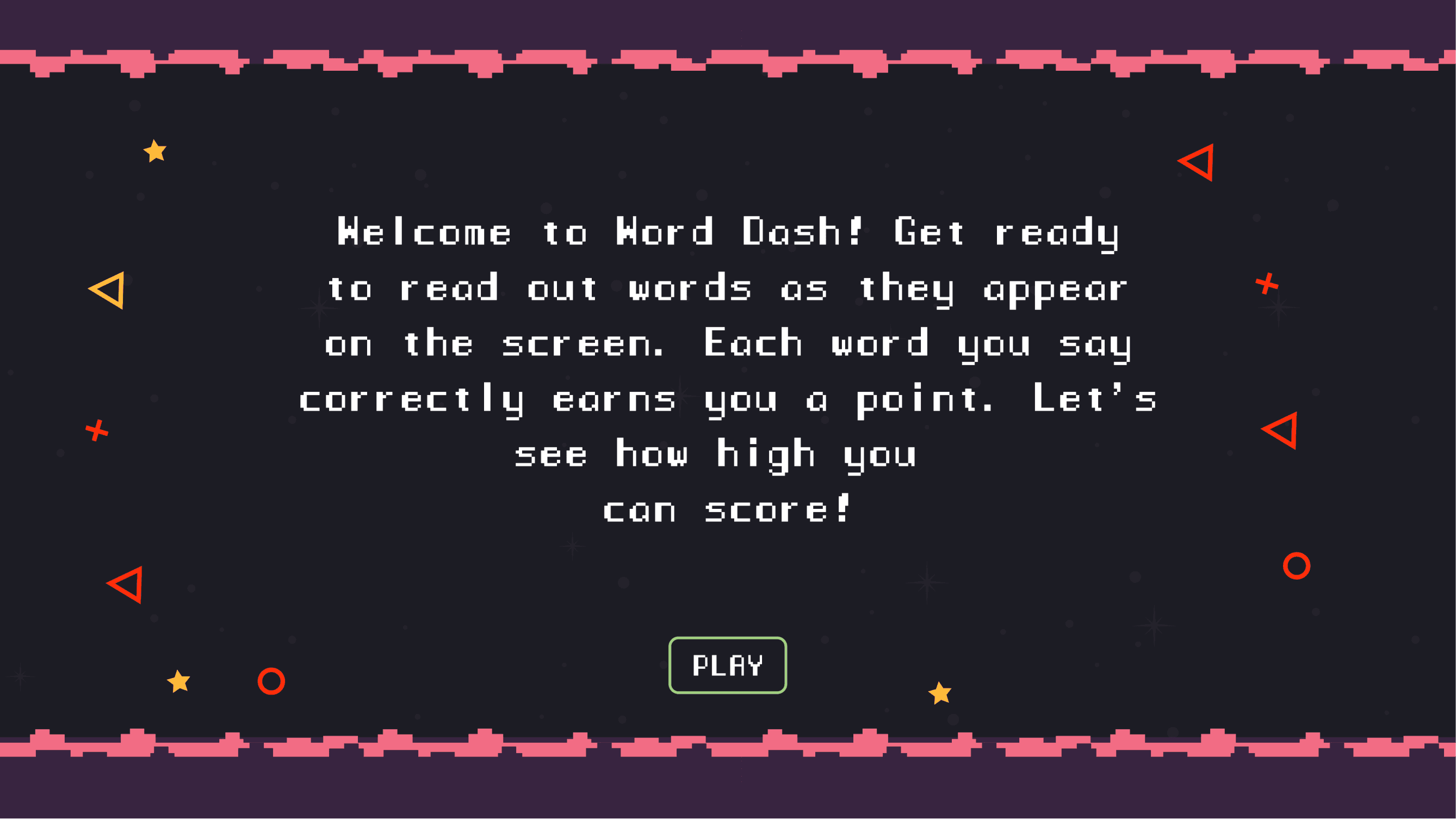 Word Dash is a fast-paced game designed to tackle the challenges of information overload by engaging players in a fun and interactive experience. Built on P5.js, the game requires players to say words aloud as they appear on the screen, testing their focus, speed, and accuracy. With four escalating phases, each introducing tougher words, faster animations, and more complex challenges, Word Dash pushes players to stay sharp while tracking their performance through voice recognition and a dynamic scoring system.