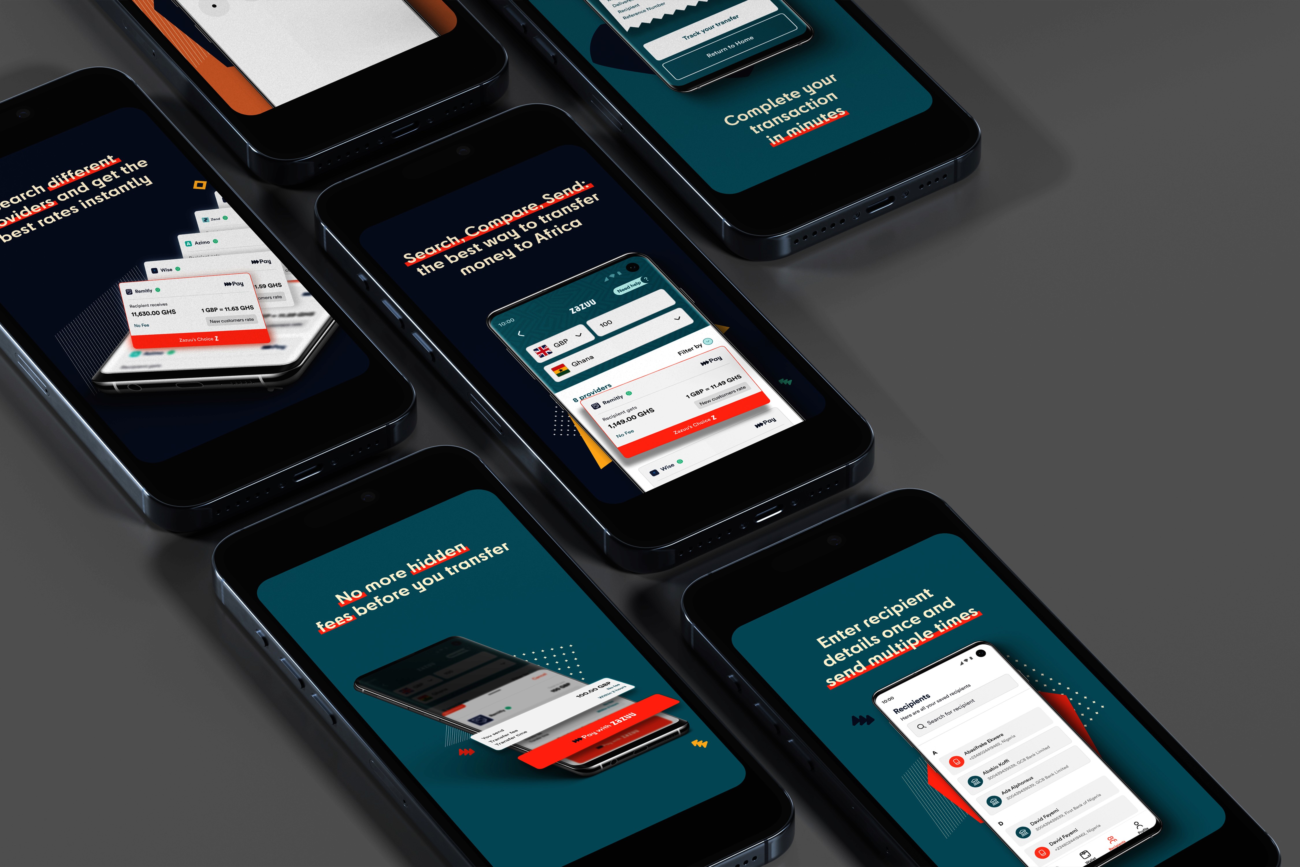 Zazuu sought to enhance its app’s visibility and improve conversion rates on the App Store and Play Store by experimenting with creative screenshot designs and compelling copy. The project focused on visually showcasing Zazuu’s core features, such as Compare and Transfer, and its array of providers, including Azimo, Wise, WorldRemit, and Western Union. Additionally, the designs emphasized Zazuu’s latest features like Wallet, Rate Alerts, and Beneficiaries, presenting a cohesive visual story that resonated with potential users.